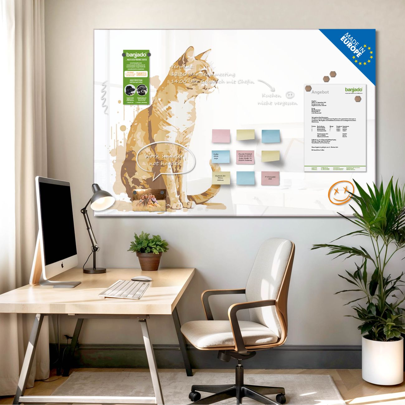 Die banjado Glas Magnettafel mit dem Motiv Motiv Aquarellkatze 3 verbindet Funktionalität mit Stil. Sie ersetzt das Zettelchaos durch klare Strukturen und bringt dabei eine warme, natürliche Atmosphäre in Ihr Zuhause. Ob im Büro, in der Küche oder im Eingangsbereich - dieses Design-Board zieht Blicke an und sorgt für Ordnung mit Charakter.