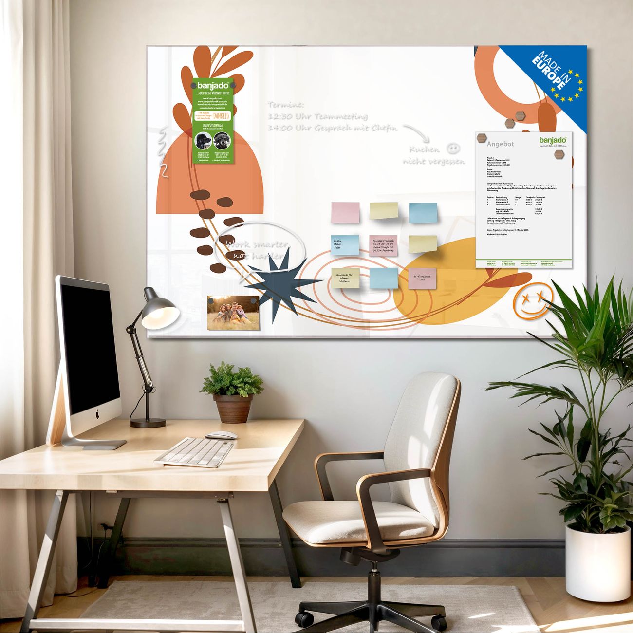 Jede Glas Magnettafel wird in unserer Werkstatt von Hand gefertigt und sorgfältig geprüft. So erhalten Sie ein echtes Qualitätsprodukt, das Funktion und Ästhetik perfekt vereint.?? Warum banjado?