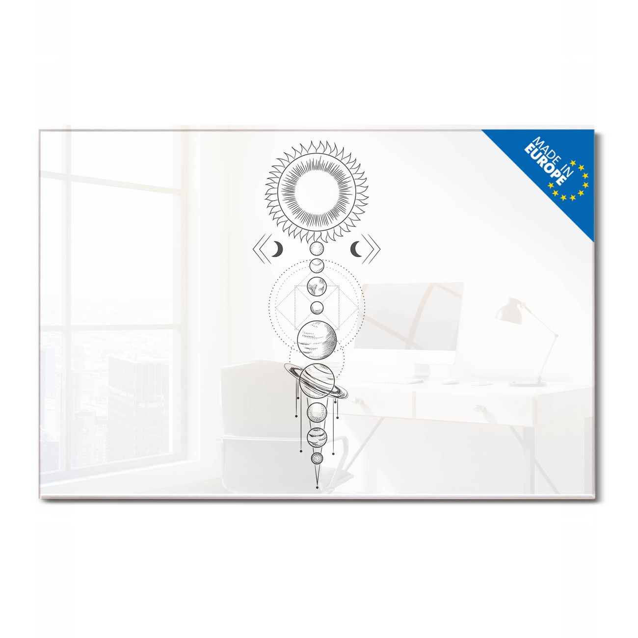 Material: 4mm Sicherheitsglas mit Metallrückwand Eigenschaften: beschreibbar, magnetisch, kratzfest Maße: 90x60x0,6cm, 8,10kg schwer Motiv Nummer 13070 Astronomie 10 Zubehör: inklusive 4 Neodym-Magnete