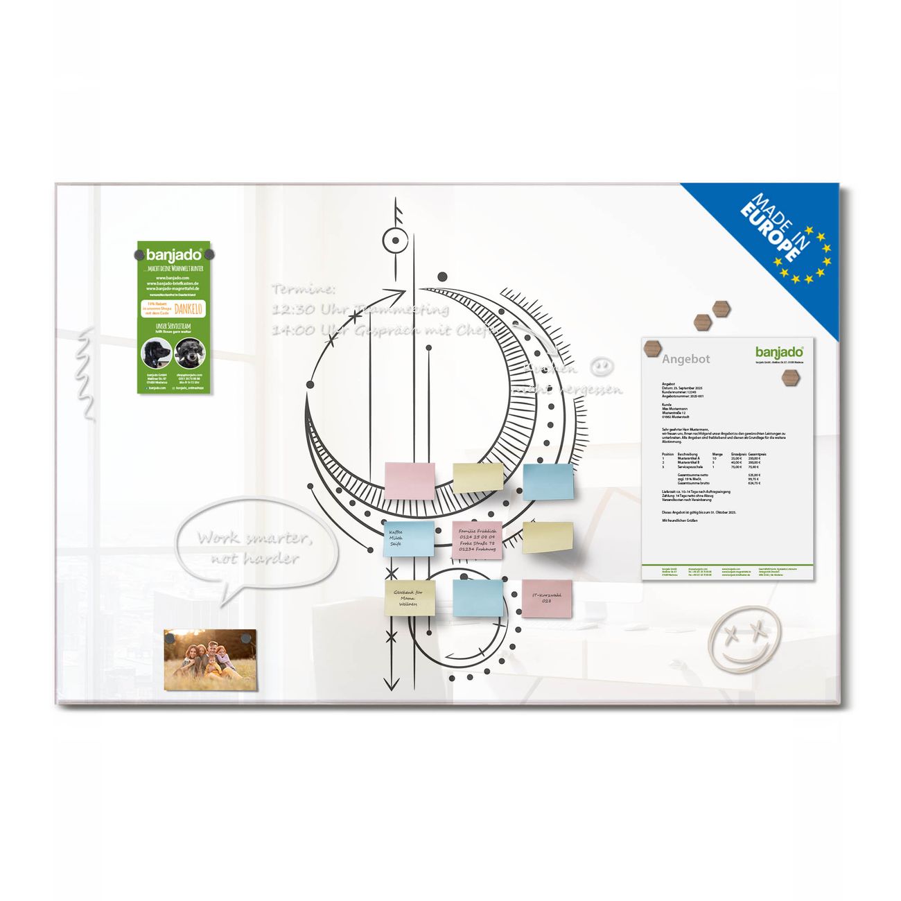 Jede Glas Magnettafel wird in unserer Werkstatt von Hand gefertigt und sorgfältig geprüft. So erhalten Sie ein echtes Qualitätsprodukt, das Funktion und Ästhetik perfekt vereint.?? Warum banjado?