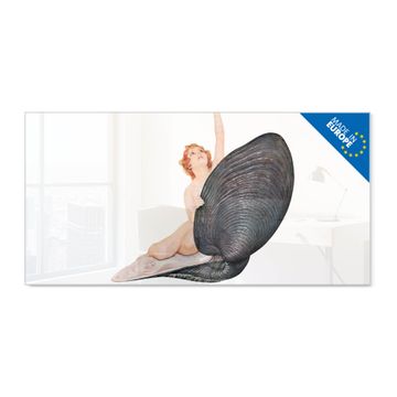 Material: 4mm Sicherheitsglas mit Metallrückwand Eigenschaften: beschreibbar, magnetisch, kratzfest Maße: 100x50x0,6cm, 7,50kg schwer Motiv Nummer 13386 Aufbruch aus der Muschel Zubehör: inklusive 4 Neodym-Magnete