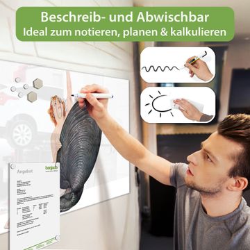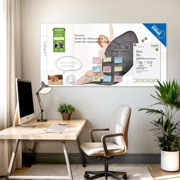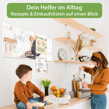 Auf der glatten Glasoberfläche lassen sich Termine, Rezepte oder Notizen ganz einfach mit Kreidestiften festhalten und rückstandslos entfernen. Starke Neodym-Magnete halten Ihre wichtigsten Erinnerungen sicher an Ort und Stelle. So entsteht Ihre ganz persönliche Ideenwand - jeden Tag neu.