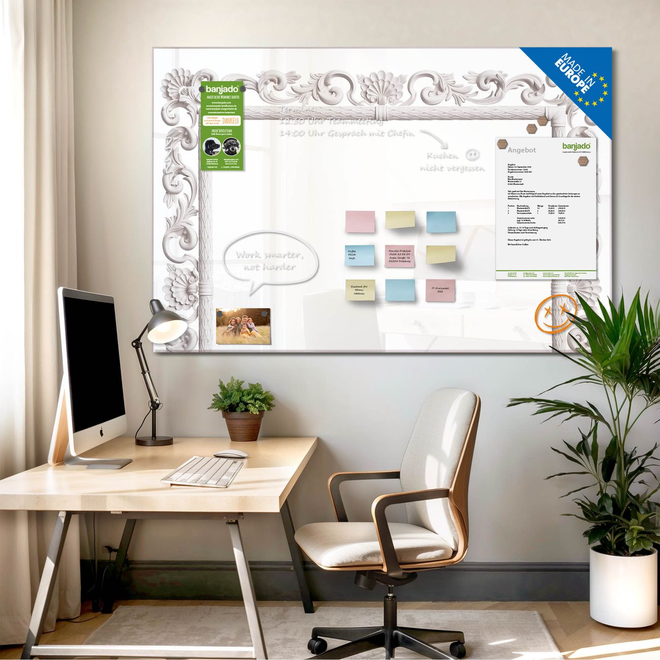 Glas Magnettafel im Querformat Motiv Barocker Bilderrahmen