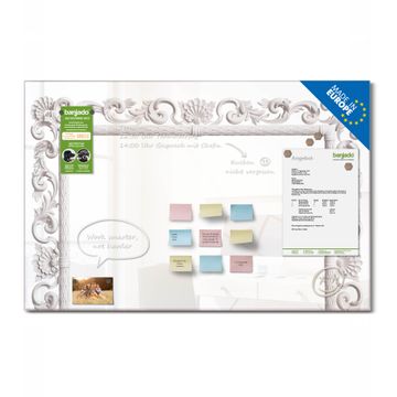 Material: 4mm Sicherheitsglas mit Metallrückwand Eigenschaften: beschreibbar, magnetisch, kratzfest Maße: 120x80x0,6cm, 14,40kg schwer Motiv Nummer 13558 Barocker Bilderrahmen Zubehör: inklusive 4 Neodym-Magnete