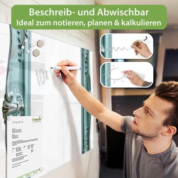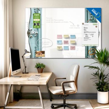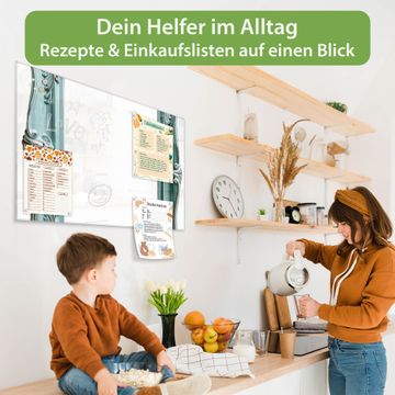 Auf der glatten Glasoberfläche lassen sich Termine, Rezepte oder Notizen ganz einfach mit Kreidestiften festhalten und rückstandslos entfernen. Starke Neodym-Magnete halten Ihre wichtigsten Erinnerungen sicher an Ort und Stelle. So entsteht Ihre ganz persönliche Ideenwand - jeden Tag neu.