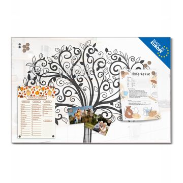 Material: 4mm Sicherheitsglas mit Metallrückwand Eigenschaften: beschreibbar, magnetisch, kratzfest Maße: 75x50x0,6cm, 5,63kg schwer Motiv Nummer 13336 Baum des Lebens Zubehör: inklusive 4 Neodym-Magnete