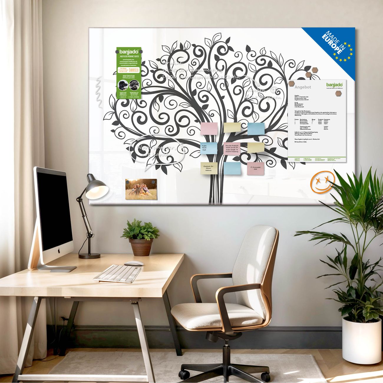 Die banjado Glas Magnettafel mit dem Motiv Motiv Baum des Lebens verbindet Funktionalität mit Stil. Sie ersetzt das Zettelchaos durch klare Strukturen und bringt dabei eine warme, natürliche Atmosphäre in Ihr Zuhause. Ob im Büro, in der Küche oder im Eingangsbereich - dieses Design-Board zieht Blicke an und sorgt für Ordnung mit Charakter.