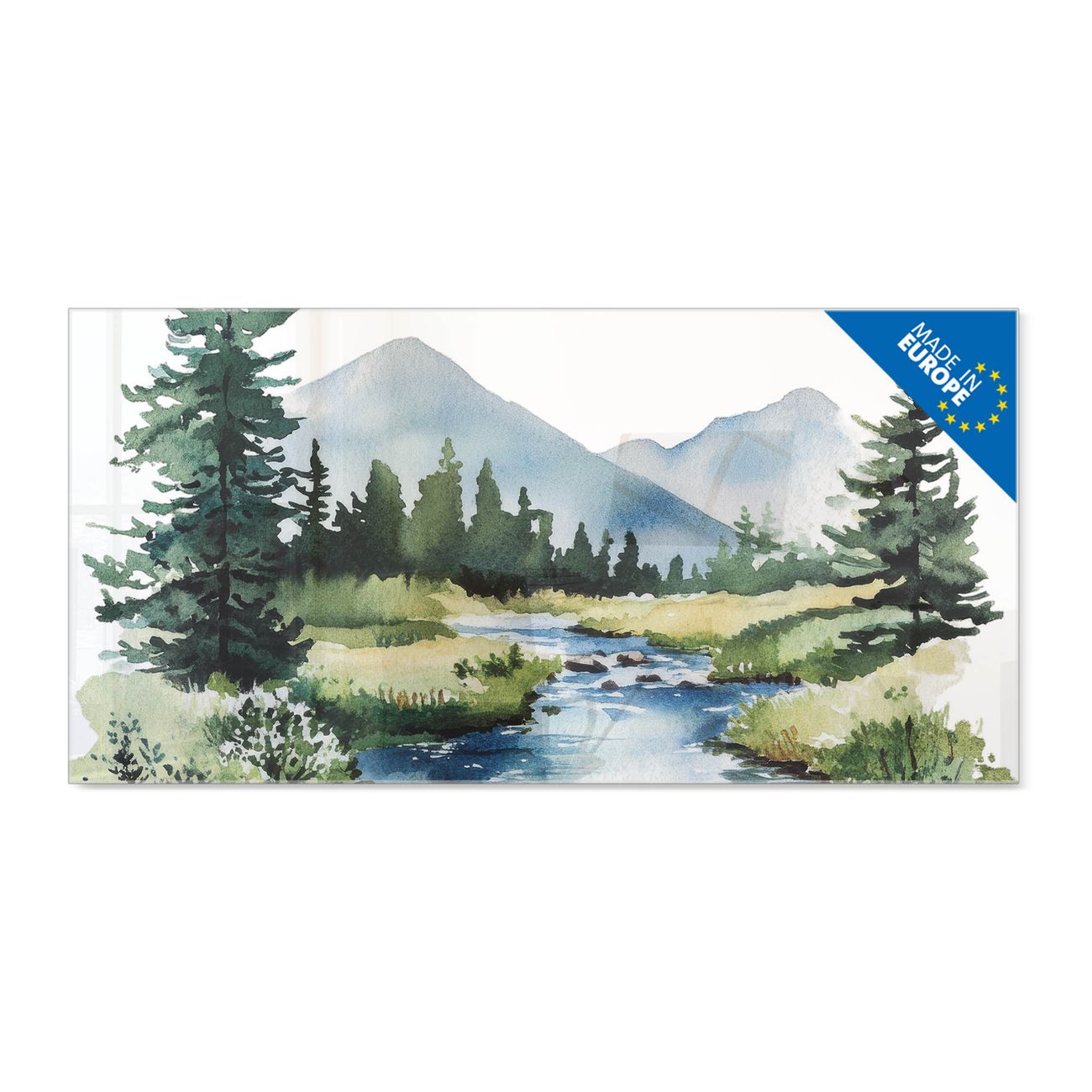 Glas Magnettafel im Querformat Motiv Bergfluss in der Natur