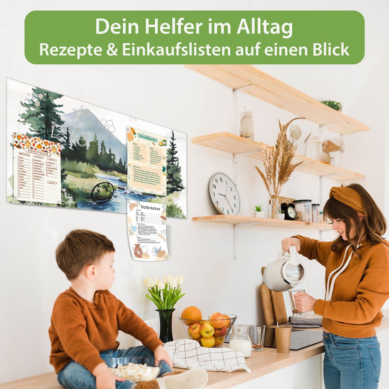 Ein Stück Design, das Ihren Alltag organisiert. Schreiben, heften, inspirieren - alles an einem Ort. Qualität, die man spürt. Montage leicht gemacht. Handwerk mit Herz - veredelt in Sachsen. Einzigartiges Design mit Motiv Motiv Bergfluss in der Natur Beschreibbare Glasoberfläche, leicht zu reinigen Starke Magnetkraft durch Stahlrückwand Inklusive 4 Neodym-Magneten Flexible Montageoptionen Handveredelt in Sachsen - Qualität, die bleibt