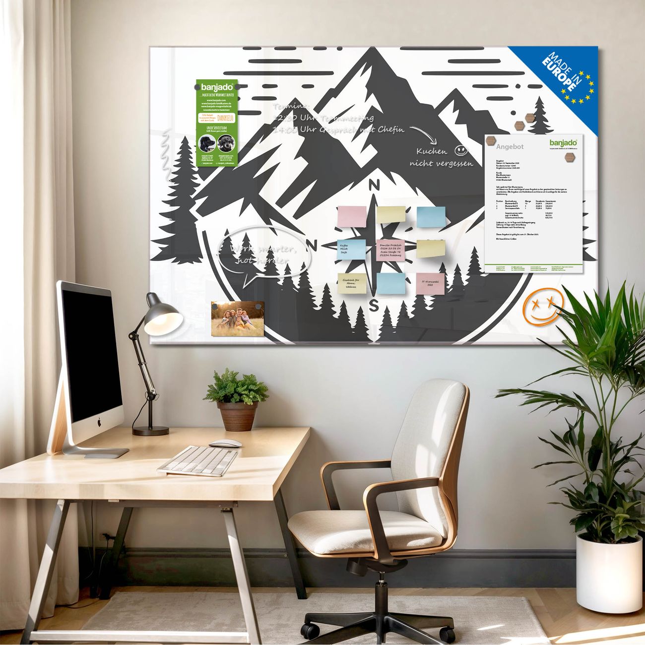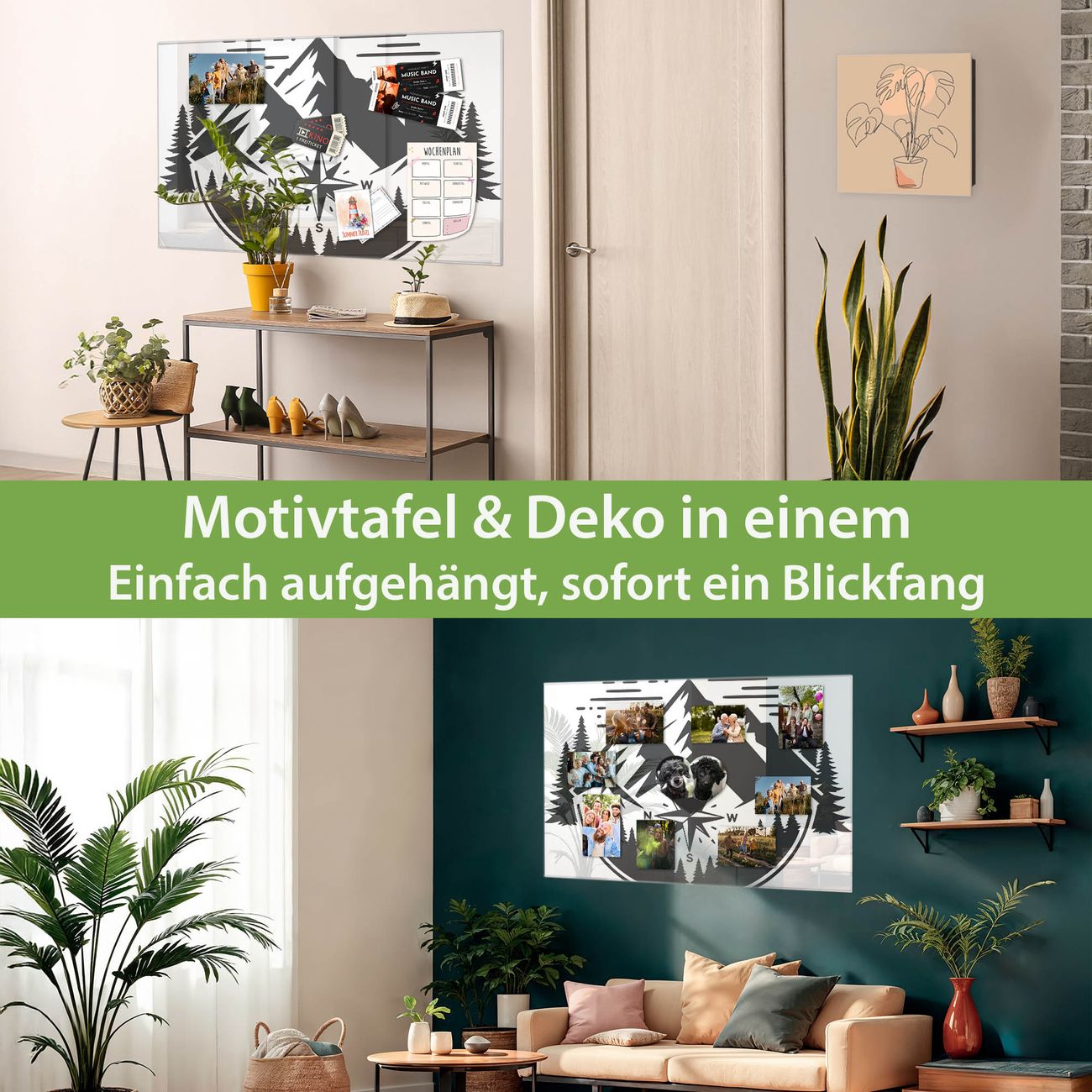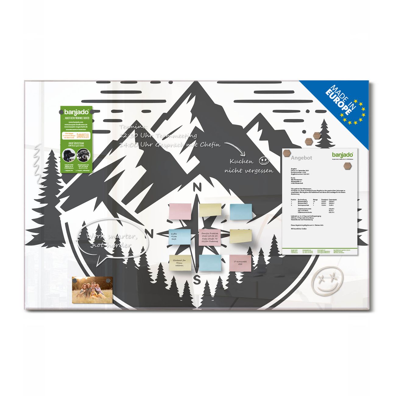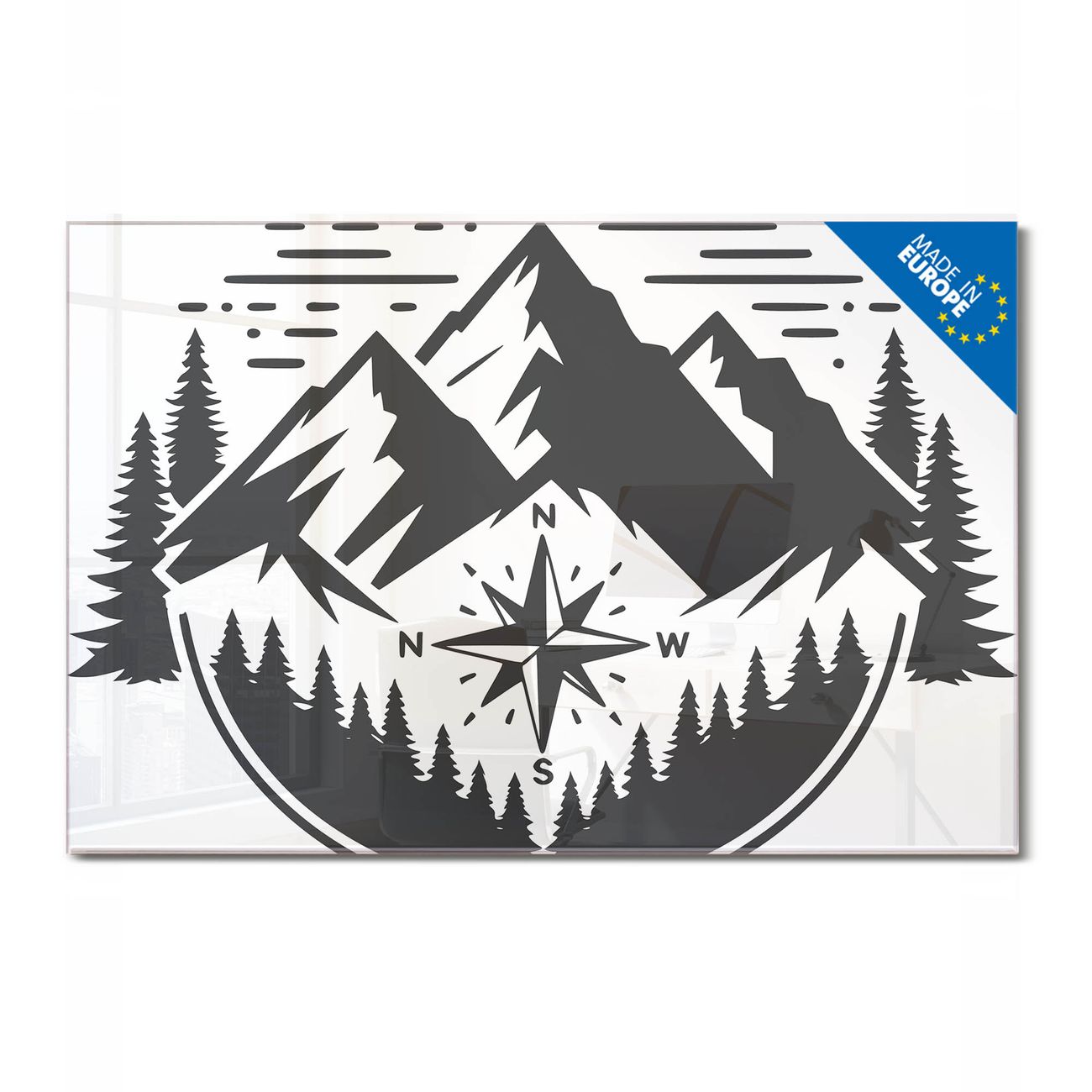Glas Magnettafel im Querformat Motiv Bergkompass