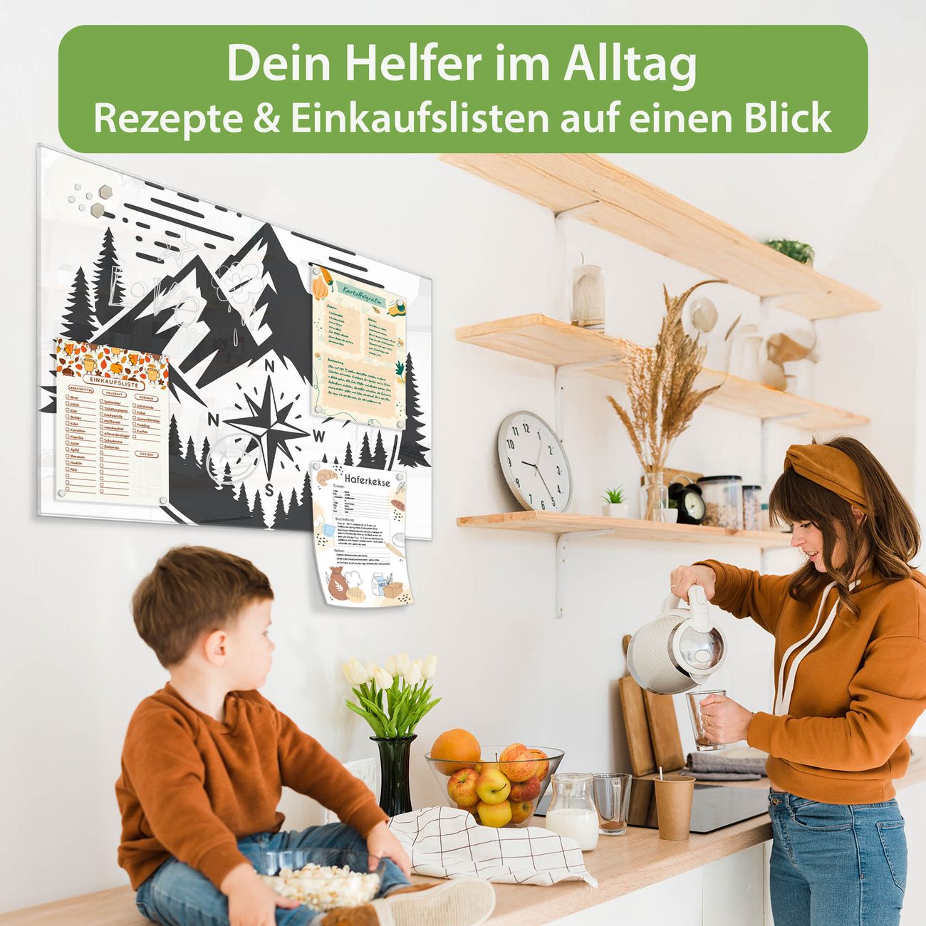 Ein Stück Design, das Ihren Alltag organisiert. Schreiben, heften, inspirieren - alles an einem Ort. Qualität, die man spürt. Montage leicht gemacht. Handwerk mit Herz - veredelt in Sachsen. Einzigartiges Design mit Motiv Motiv Bergkompass Beschreibbare Glasoberfläche, leicht zu reinigen Starke Magnetkraft durch Stahlrückwand Inklusive 4 Neodym-Magneten Flexible Montageoptionen Handveredelt in Sachsen - Qualität, die bleibt