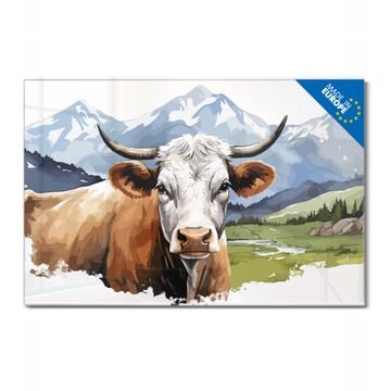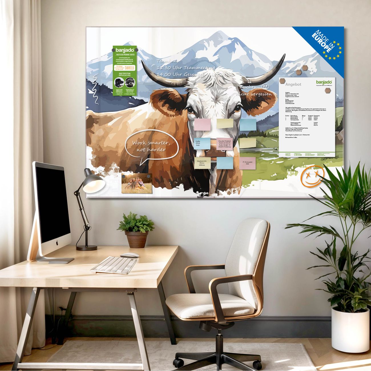 Glas Magnettafel im Querformat Motiv Bergkuh in der Landschaft