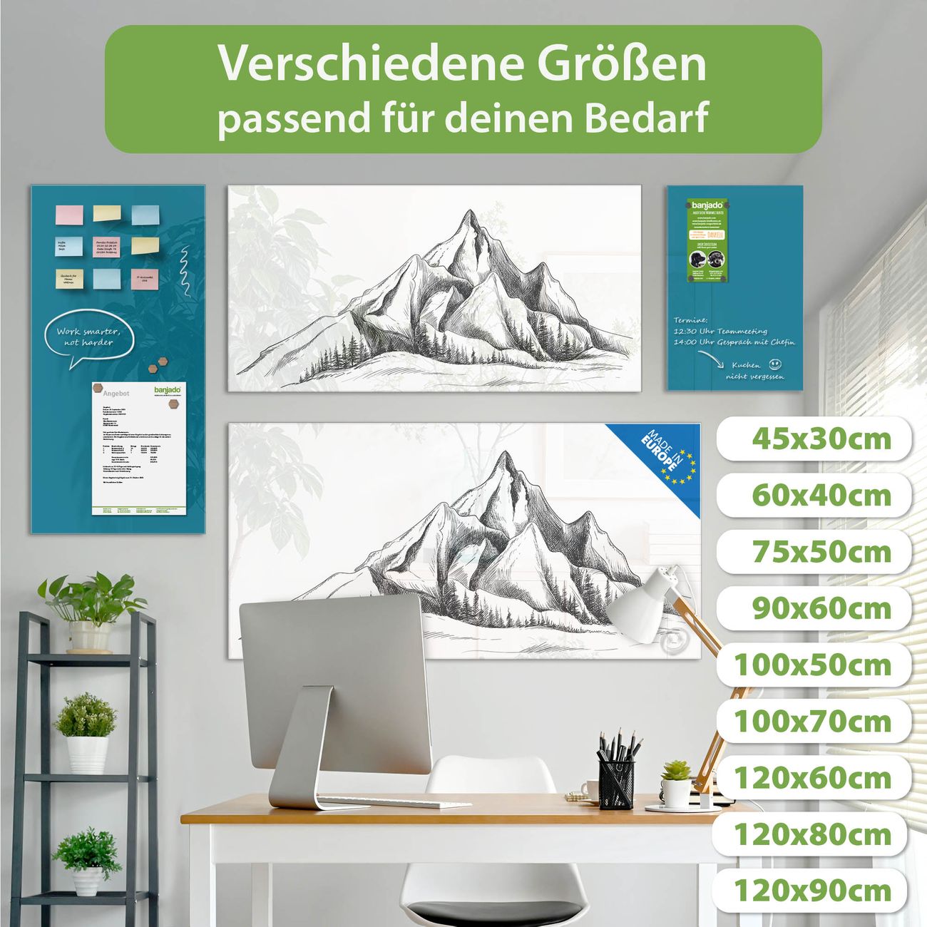 Ein Stück Design, das Ihren Alltag organisiert. Schreiben, heften, inspirieren - alles an einem Ort. Qualität, die man spürt. Montage leicht gemacht. Handwerk mit Herz - veredelt in Sachsen. Einzigartiges Design mit Motiv Motiv Bergsilhouette Beschreibbare Glasoberfläche, leicht zu reinigen Starke Magnetkraft durch Stahlrückwand Inklusive 4 Neodym-Magneten Flexible Montageoptionen Handveredelt in Sachsen - Qualität, die bleibt