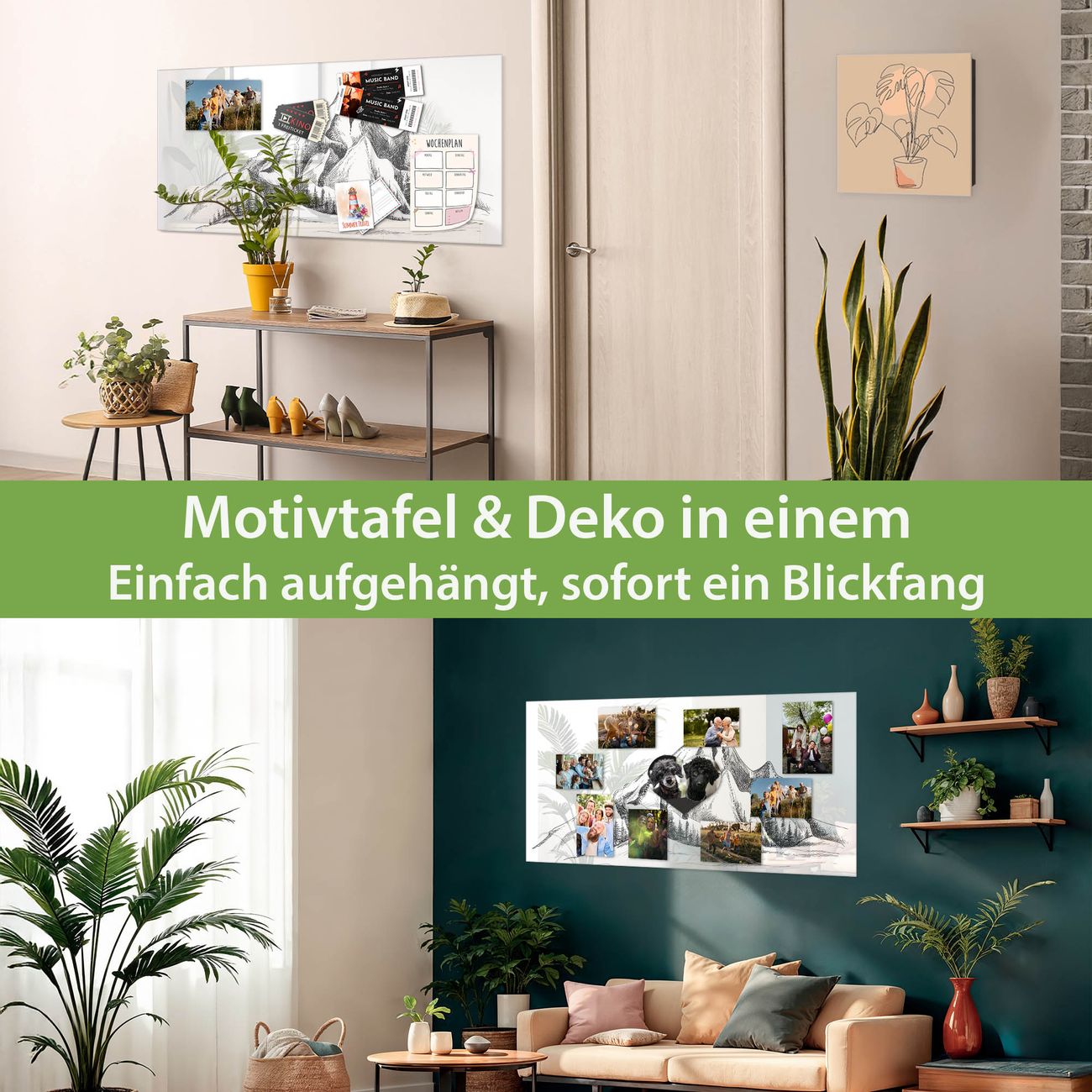 Die banjado Glas Magnettafel mit dem Motiv Motiv Bergsilhouette verbindet Funktionalität mit Stil. Sie ersetzt das Zettelchaos durch klare Strukturen und bringt dabei eine warme, natürliche Atmosphäre in Ihr Zuhause. Ob im Büro, in der Küche oder im Eingangsbereich - dieses Design-Board zieht Blicke an und sorgt für Ordnung mit Charakter.