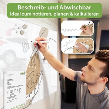 Gefertigt aus gehärtetem Sicherheitsglas mit einer magnetischen Rückwand aus Stahl überzeugt diese Magnettafel durch Stabilität und Langlebigkeit. Die Oberfläche bleibt dauerhaft brillant und pflegeleicht, selbst bei täglicher Nutzung.
