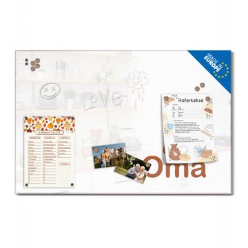 Material: 4mm Sicherheitsglas mit Metallrückwand Eigenschaften: beschreibbar, magnetisch, kratzfest Maße: 90x60x0,6cm, 8,10kg schwer Motiv Nummer 13119 beste Oma 2 Zubehör: inklusive 4 Neodym-Magnete