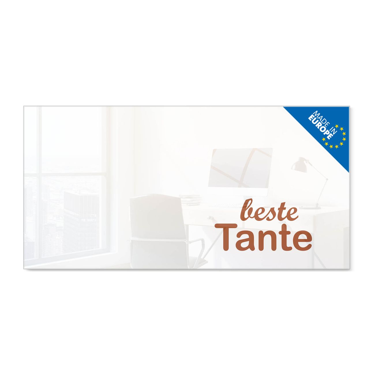 Material: 4mm Sicherheitsglas mit Metallrückwand Eigenschaften: beschreibbar, magnetisch, kratzfest Maße: 100x50x0,6cm, 7,50kg schwer Motiv Nummer 13123 beste Tante 2 Zubehör: inklusive 4 Neodym-Magnete