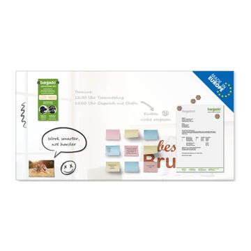 Auf der glatten Glasoberfläche lassen sich Termine, Rezepte oder Notizen ganz einfach mit Kreidestiften festhalten und rückstandslos entfernen. Starke Neodym-Magnete halten Ihre wichtigsten Erinnerungen sicher an Ort und Stelle. So entsteht Ihre ganz persönliche Ideenwand - jeden Tag neu.