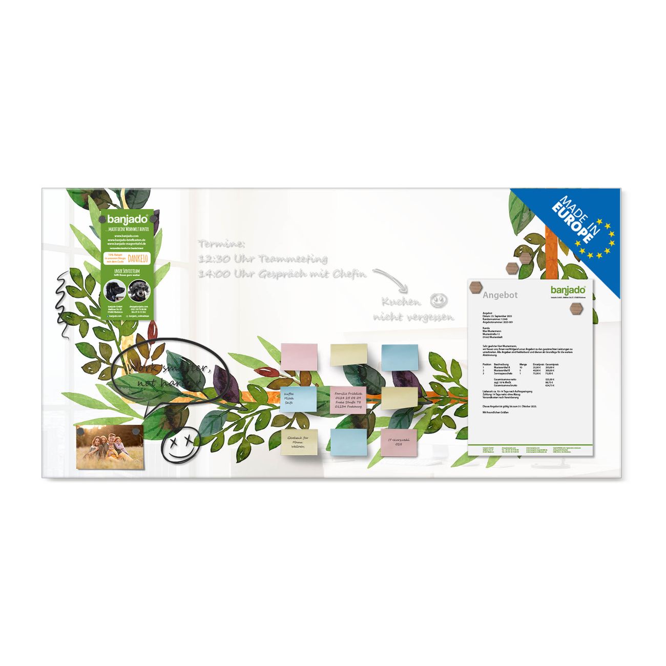 Glas Magnettafel im Querformat Motiv Blätterrahmen 2