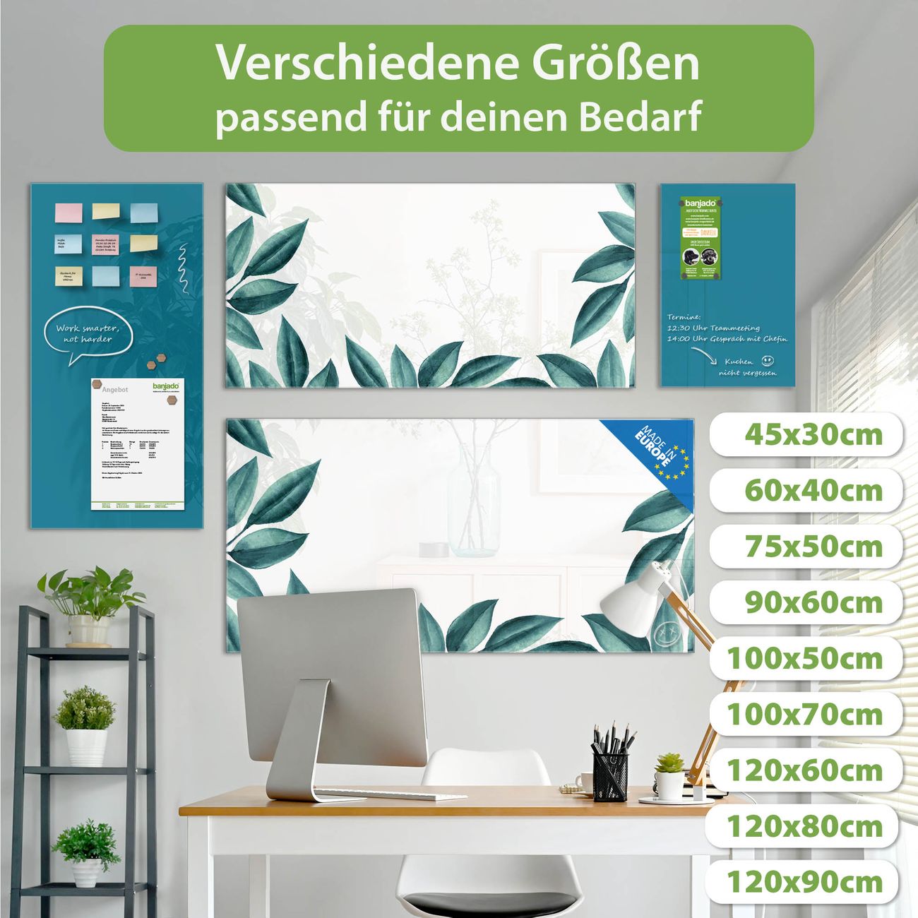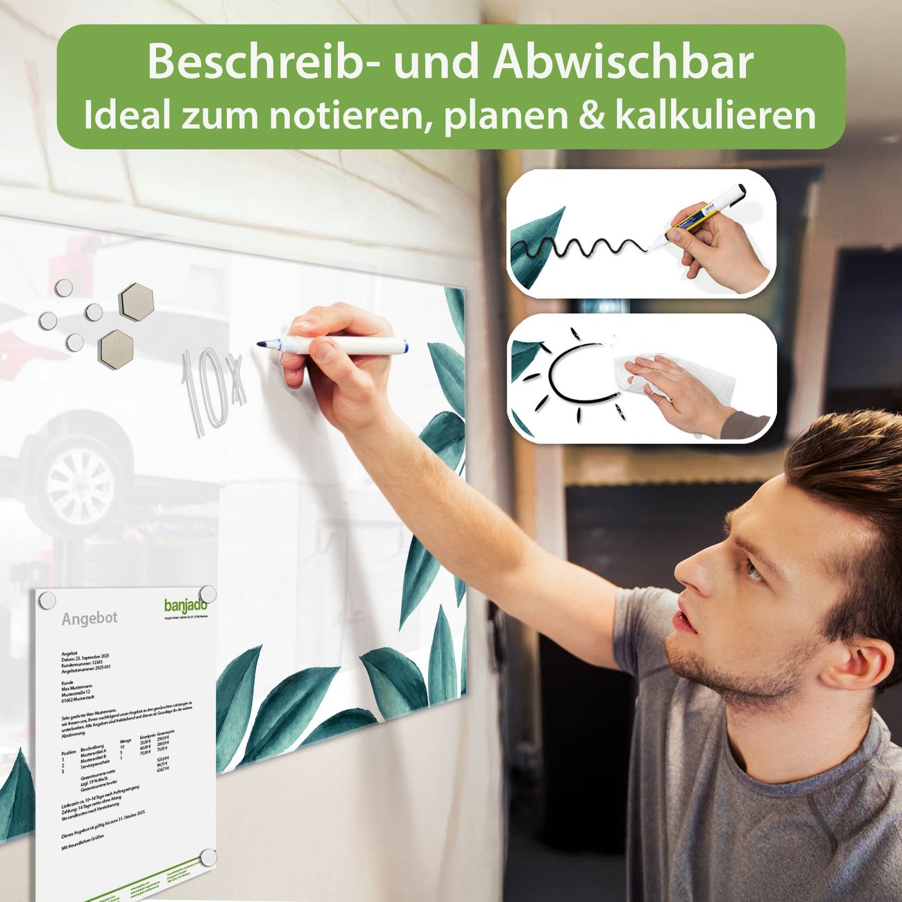 Jede Glas Magnettafel wird in unserer Werkstatt von Hand gefertigt und sorgfältig geprüft. So erhalten Sie ein echtes Qualitätsprodukt, das Funktion und Ästhetik perfekt vereint.?? Warum banjado?