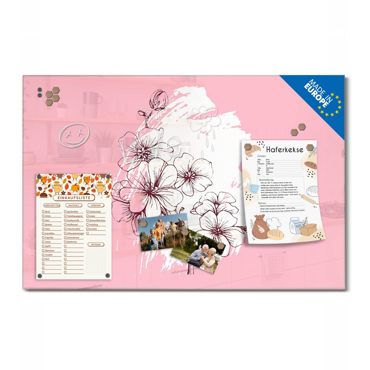 Ein Stück Design, das Ihren Alltag organisiert. Schreiben, heften, inspirieren - alles an einem Ort. Qualität, die man spürt. Montage leicht gemacht. Handwerk mit Herz - veredelt in Sachsen. Einzigartiges Design mit Motiv Motiv Blütenpracht Beschreibbare Glasoberfläche, leicht zu reinigen Starke Magnetkraft durch Stahlrückwand Inklusive 4 Neodym-Magneten Flexible Montageoptionen Handveredelt in Sachsen - Qualität, die bleibt