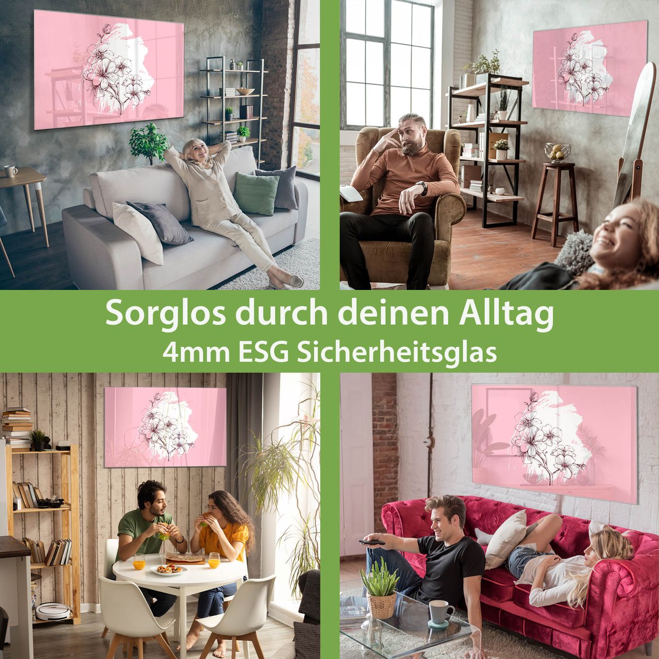 Material: 4mm Sicherheitsglas mit Metallrückwand Eigenschaften: beschreibbar, magnetisch, kratzfest Maße: 45x30x0,6cm, 2,03kg schwer Motiv Nummer 13234 Blütenpracht Zubehör: inklusive 4 Neodym-Magnete
