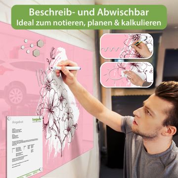 Die banjado Glas Magnettafel mit dem Motiv Motiv Blütenpracht verbindet Funktionalität mit Stil. Sie ersetzt das Zettelchaos durch klare Strukturen und bringt dabei eine warme, natürliche Atmosphäre in Ihr Zuhause. Ob im Büro, in der Küche oder im Eingangsbereich - dieses Design-Board zieht Blicke an und sorgt für Ordnung mit Charakter.