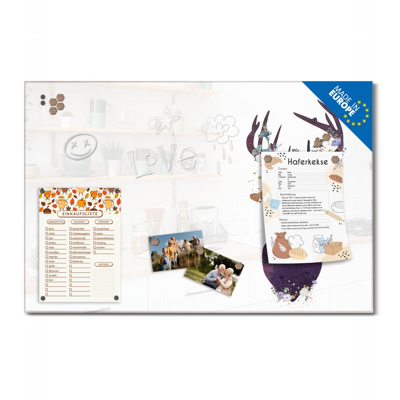 Auf der glatten Glasoberfläche lassen sich Termine, Rezepte oder Notizen ganz einfach mit Kreidestiften festhalten und rückstandslos entfernen. Starke Neodym-Magnete halten Ihre wichtigsten Erinnerungen sicher an Ort und Stelle. So entsteht Ihre ganz persönliche Ideenwand - jeden Tag neu.