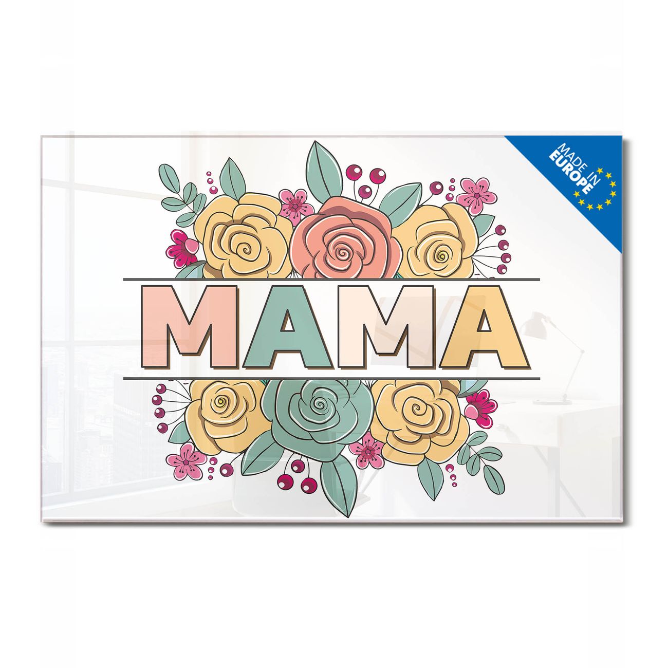 Glas Magnettafel im Querformat Motiv Blumengruß für Mama