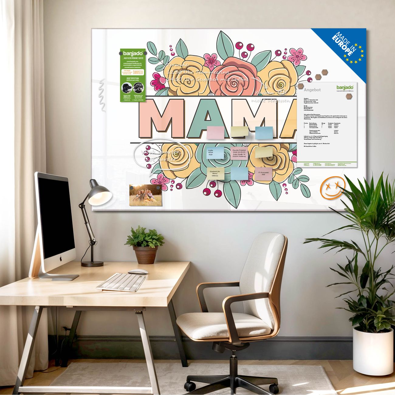 Die banjado Glas Magnettafel mit dem Motiv Motiv Blumengruß für Mama verbindet Funktionalität mit Stil. Sie ersetzt das Zettelchaos durch klare Strukturen und bringt dabei eine warme, natürliche Atmosphäre in Ihr Zuhause. Ob im Büro, in der Küche oder im Eingangsbereich - dieses Design-Board zieht Blicke an und sorgt für Ordnung mit Charakter.