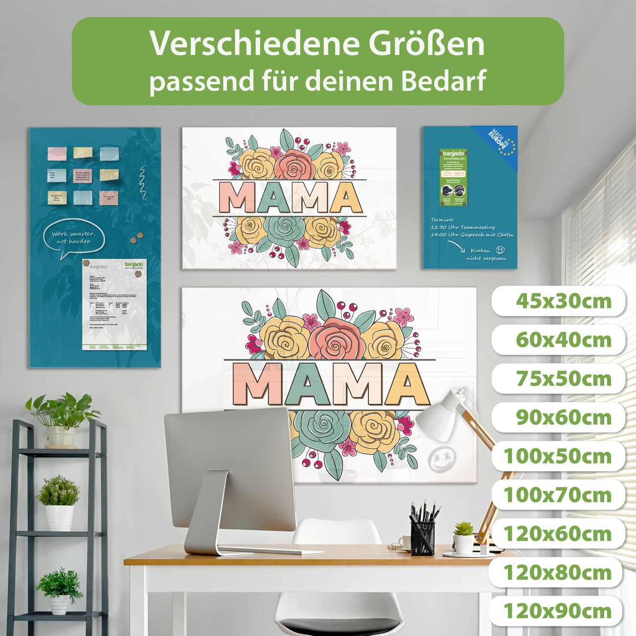 Ein Stück Design, das Ihren Alltag organisiert. Schreiben, heften, inspirieren - alles an einem Ort. Qualität, die man spürt. Montage leicht gemacht. Handwerk mit Herz - veredelt in Sachsen. Einzigartiges Design mit Motiv Motiv Blumengruß für Mama Beschreibbare Glasoberfläche, leicht zu reinigen Starke Magnetkraft durch Stahlrückwand Inklusive 4 Neodym-Magneten Flexible Montageoptionen Handveredelt in Sachsen - Qualität, die bleibt