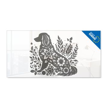 Glas Magnettafel im Querformat Motiv Blumenhund Silhouette