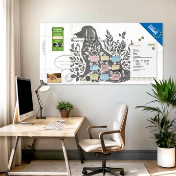 Die banjado Glas Magnettafel mit dem Motiv Motiv Blumenhund Silhouette verbindet Funktionalität mit Stil. Sie ersetzt das Zettelchaos durch klare Strukturen und bringt dabei eine warme, natürliche Atmosphäre in Ihr Zuhause. Ob im Büro, in der Küche oder im Eingangsbereich - dieses Design-Board zieht Blicke an und sorgt für Ordnung mit Charakter.