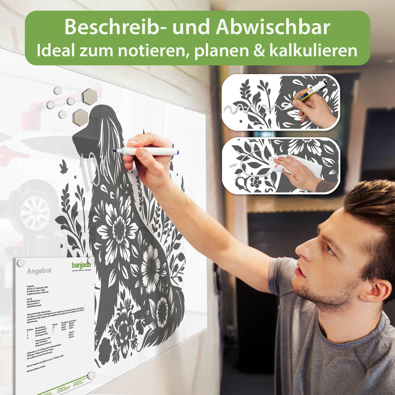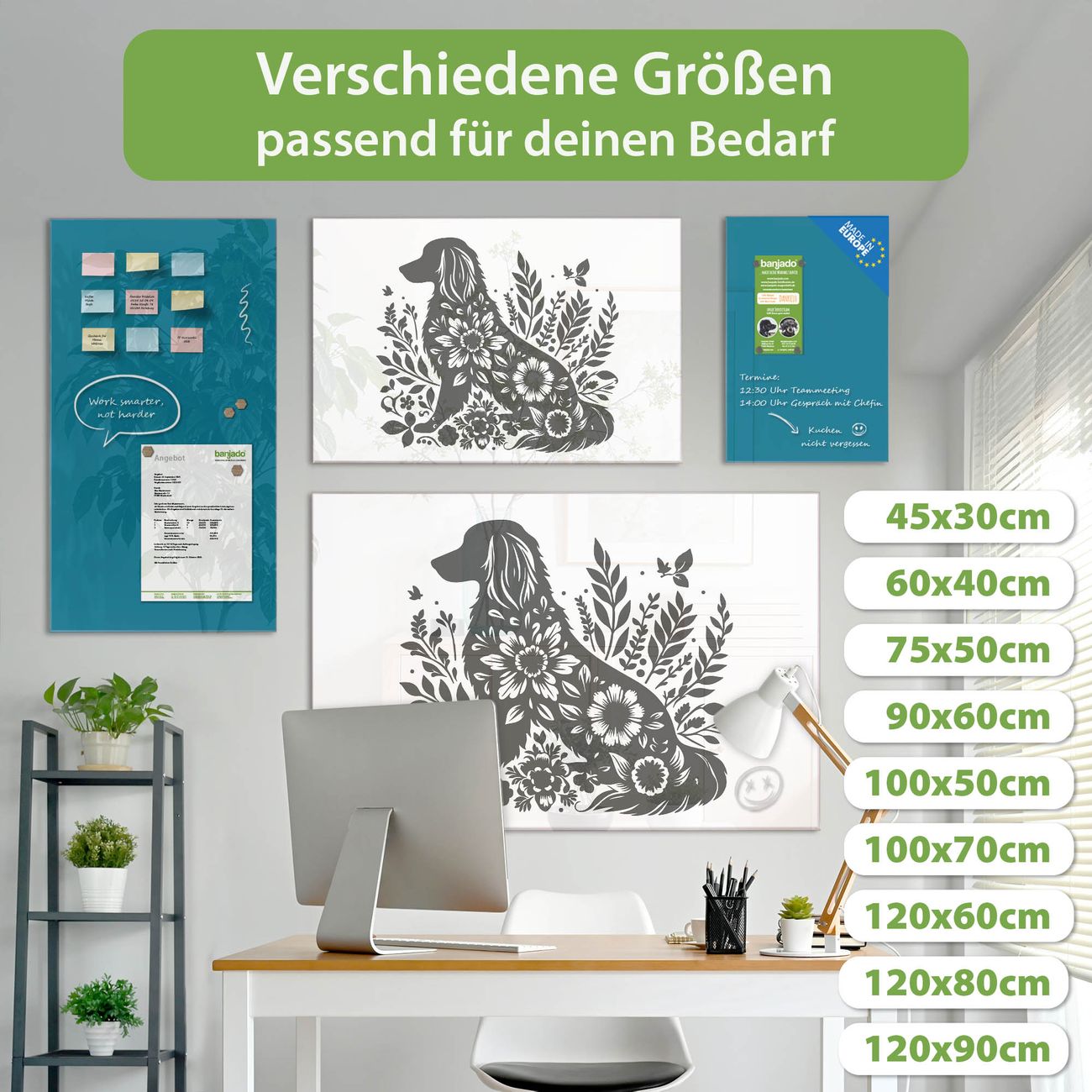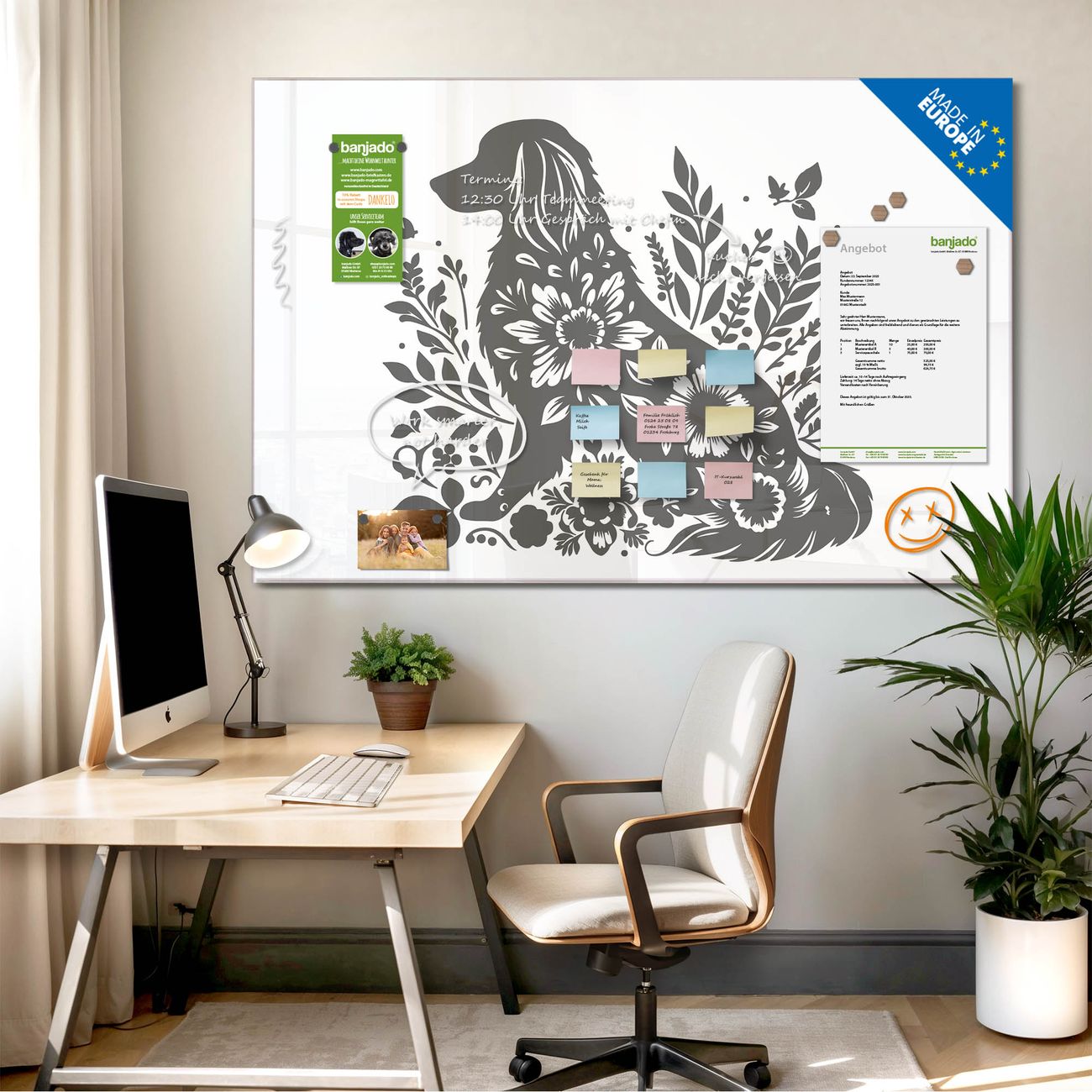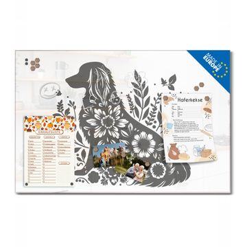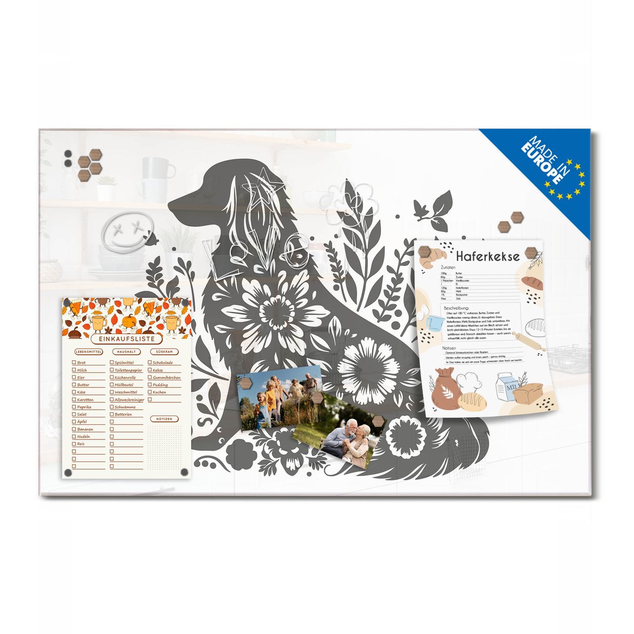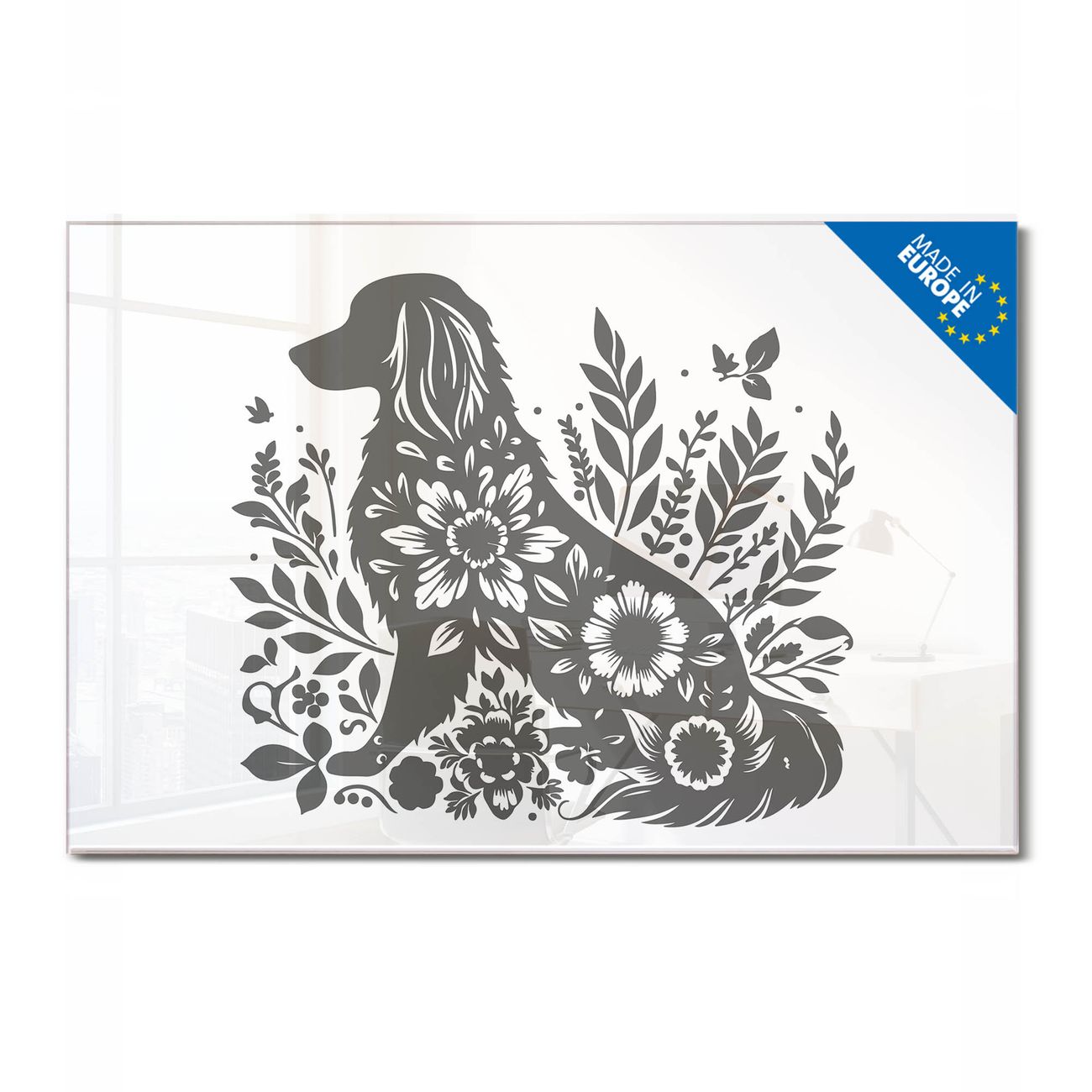 Glas Magnettafel im Querformat Motiv Blumenhund Silhouette