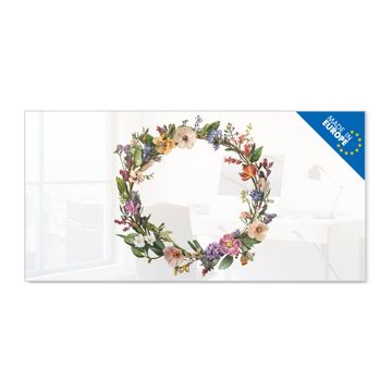 Material: 4mm Sicherheitsglas mit Metallrückwand Eigenschaften: beschreibbar, magnetisch, kratzfest Maße: 100x50x0,6cm, 7,50kg schwer Motiv Nummer 13513 Blumenkranz der Jahreszeiten Zubehör: inklusive 4 Neodym-Magnete