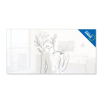 Material: 4mm Sicherheitsglas mit Metallrückwand Eigenschaften: beschreibbar, magnetisch, kratzfest Maße: 100x50x0,6cm, 7,50kg schwer Motiv Nummer 13311 Blumenlinie Zubehör: inklusive 4 Neodym-Magnete