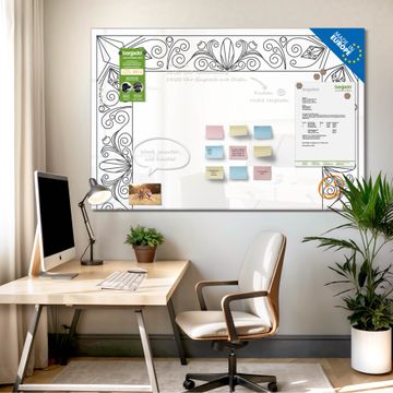 Glas Magnettafel im Querformat Motiv Blumenornament-Rahmen