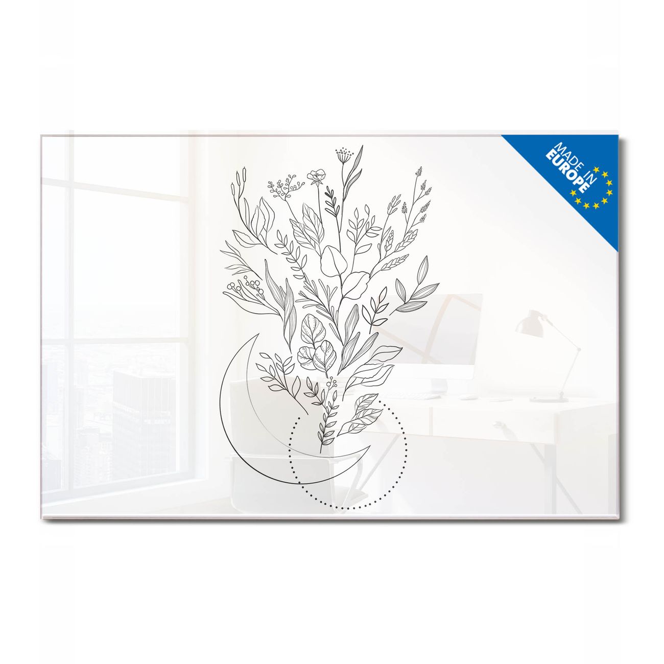 Material: 4mm Sicherheitsglas mit Metallrückwand Eigenschaften: beschreibbar, magnetisch, kratzfest Maße: 60x40x0,6cm, 3,6kg schwer Motiv Nummer 13052 Blumenstrauß 2 Zubehör: inklusive 4 Neodym-Magnete