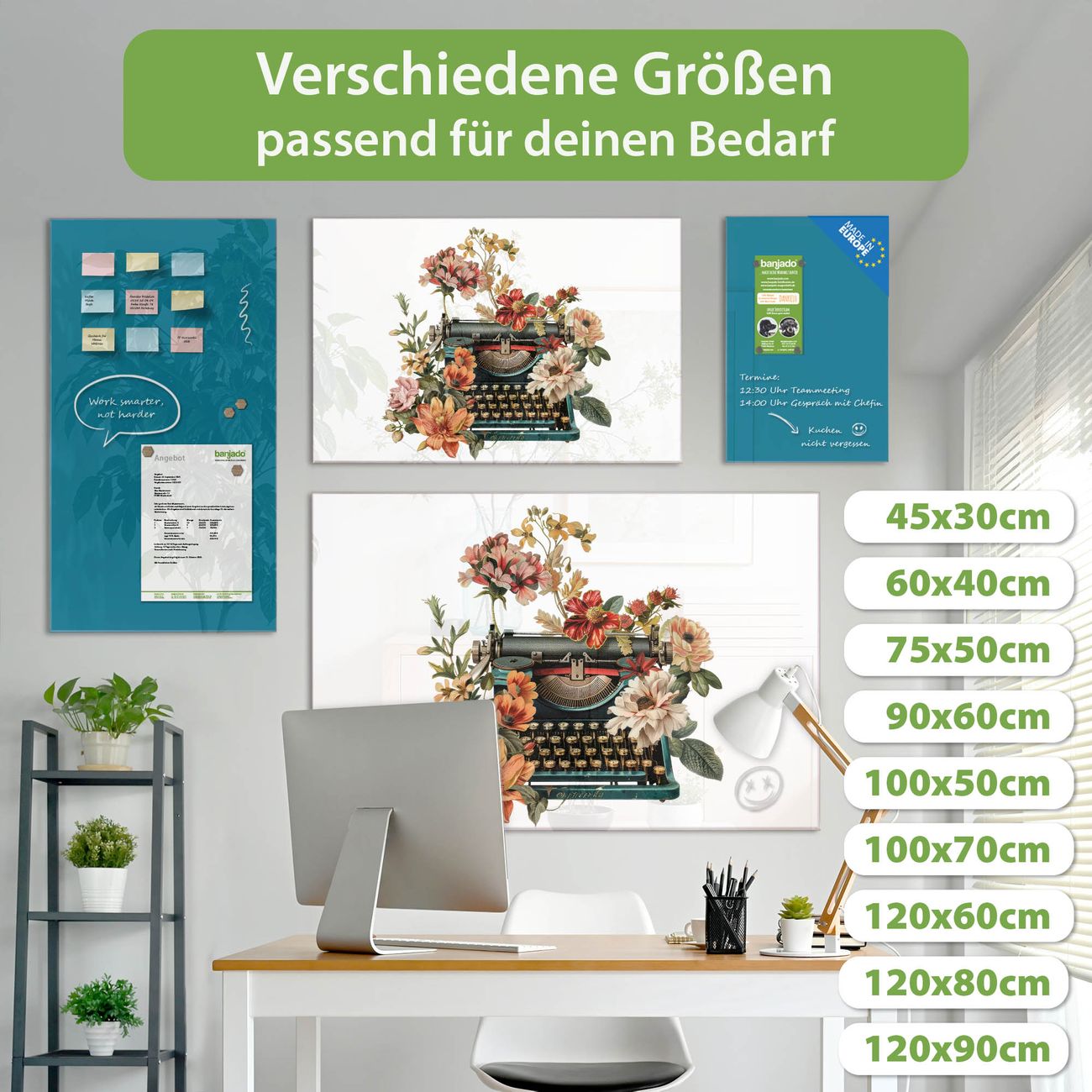 Jede Glas Magnettafel wird in unserer Werkstatt von Hand gefertigt und sorgfältig geprüft. So erhalten Sie ein echtes Qualitätsprodukt, das Funktion und Ästhetik perfekt vereint.?? Warum banjado?