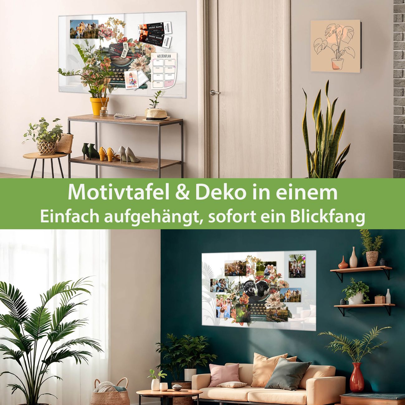 Die banjado Glas Magnettafel mit dem Motiv Motiv Blumige Schreibmaschine verbindet Funktionalität mit Stil. Sie ersetzt das Zettelchaos durch klare Strukturen und bringt dabei eine warme, natürliche Atmosphäre in Ihr Zuhause. Ob im Büro, in der Küche oder im Eingangsbereich - dieses Design-Board zieht Blicke an und sorgt für Ordnung mit Charakter.