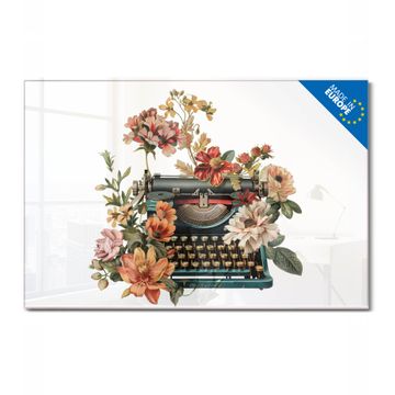 Glas Magnettafel im Querformat Motiv Blumige Schreibmaschine
