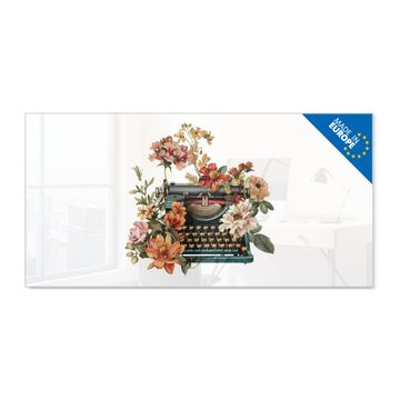 Glas Magnettafel im Querformat Motiv Blumige Schreibmaschine