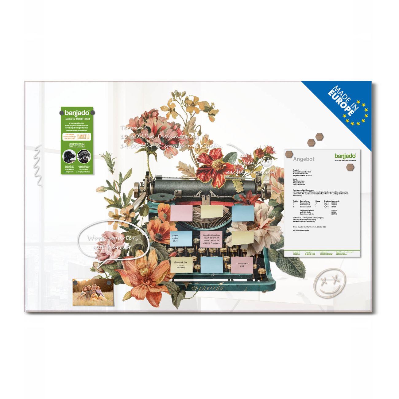 Glas Magnettafel im Querformat Motiv Blumige Schreibmaschine