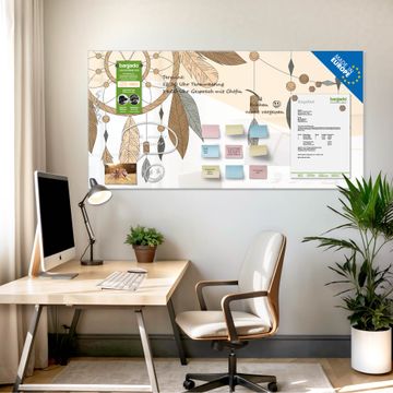 Die banjado Glas Magnettafel mit dem Motiv Motiv Boho Traumfänger verbindet Funktionalität mit Stil. Sie ersetzt das Zettelchaos durch klare Strukturen und bringt dabei eine warme, natürliche Atmosphäre in Ihr Zuhause. Ob im Büro, in der Küche oder im Eingangsbereich - dieses Design-Board zieht Blicke an und sorgt für Ordnung mit Charakter.