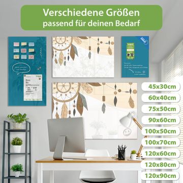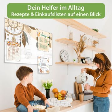 Die banjado Glas Magnettafel mit dem Motiv Motiv Boho Traumfänger verbindet Funktionalität mit Stil. Sie ersetzt das Zettelchaos durch klare Strukturen und bringt dabei eine warme, natürliche Atmosphäre in Ihr Zuhause. Ob im Büro, in der Küche oder im Eingangsbereich - dieses Design-Board zieht Blicke an und sorgt für Ordnung mit Charakter.