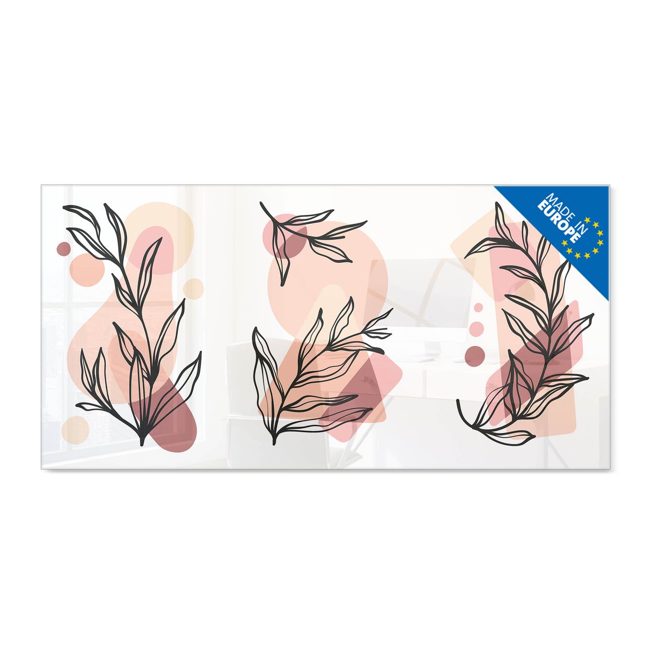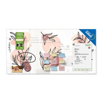 Material: 4mm Sicherheitsglas mit Metallrückwand Eigenschaften: beschreibbar, magnetisch, kratzfest Maße: 100x50x0,6cm, 7,50kg schwer Motiv Nummer 13212 Botanische Linienkunst 2 Zubehör: inklusive 4 Neodym-Magnete