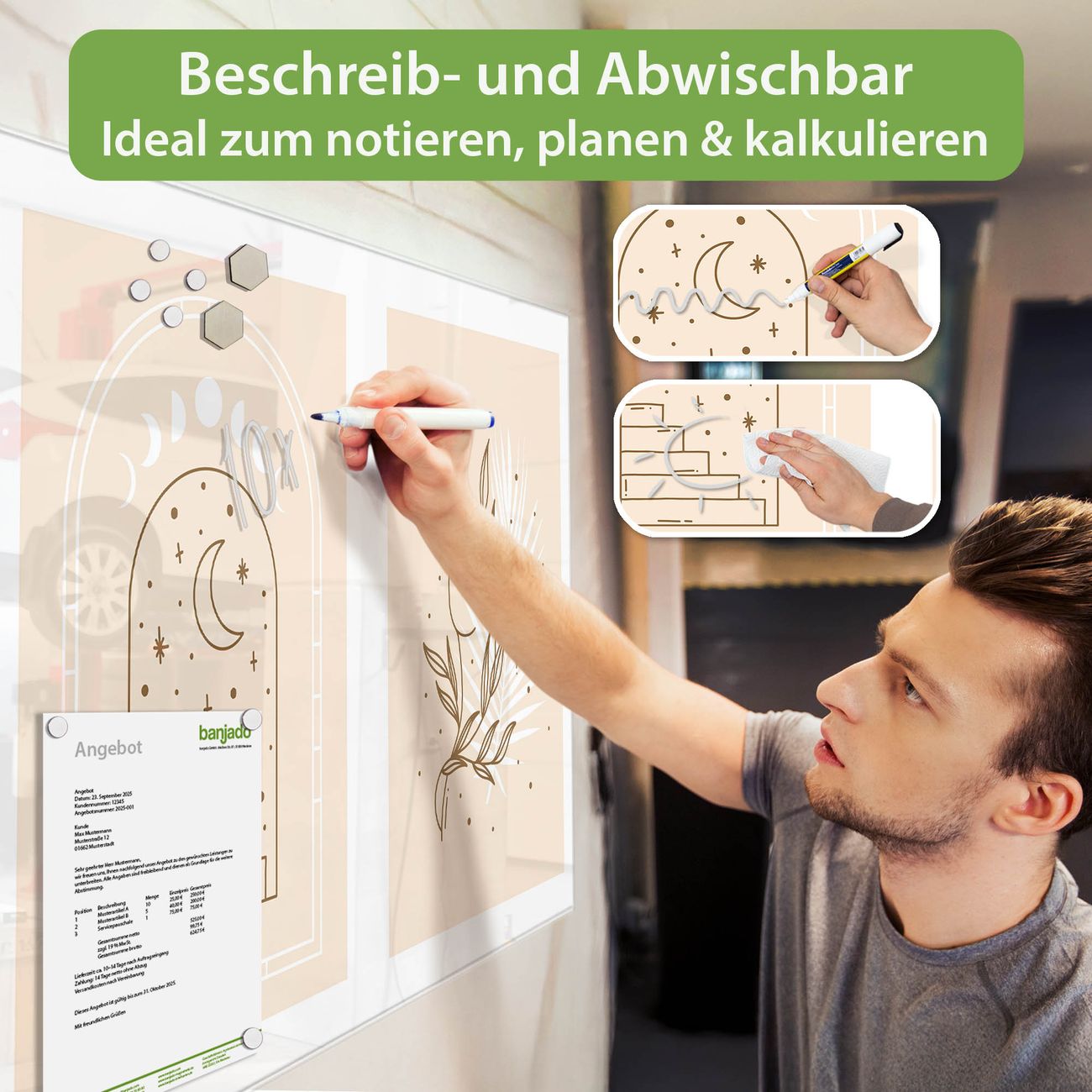 Glas Magnettafel im Querformat Motiv Botanische Linienkunst