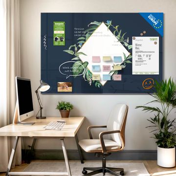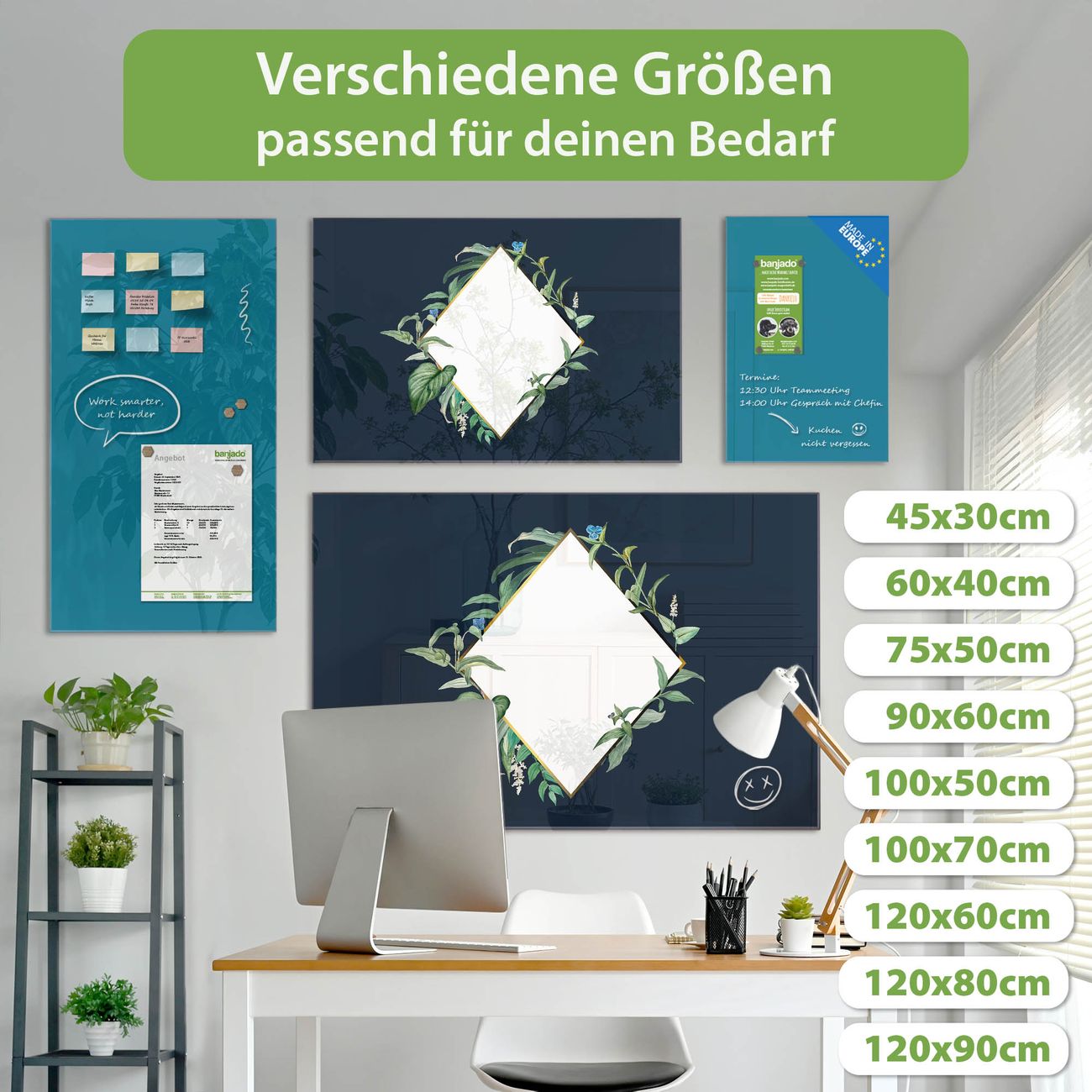Glas Magnettafel im Querformat Motiv Botanischer Rahmen