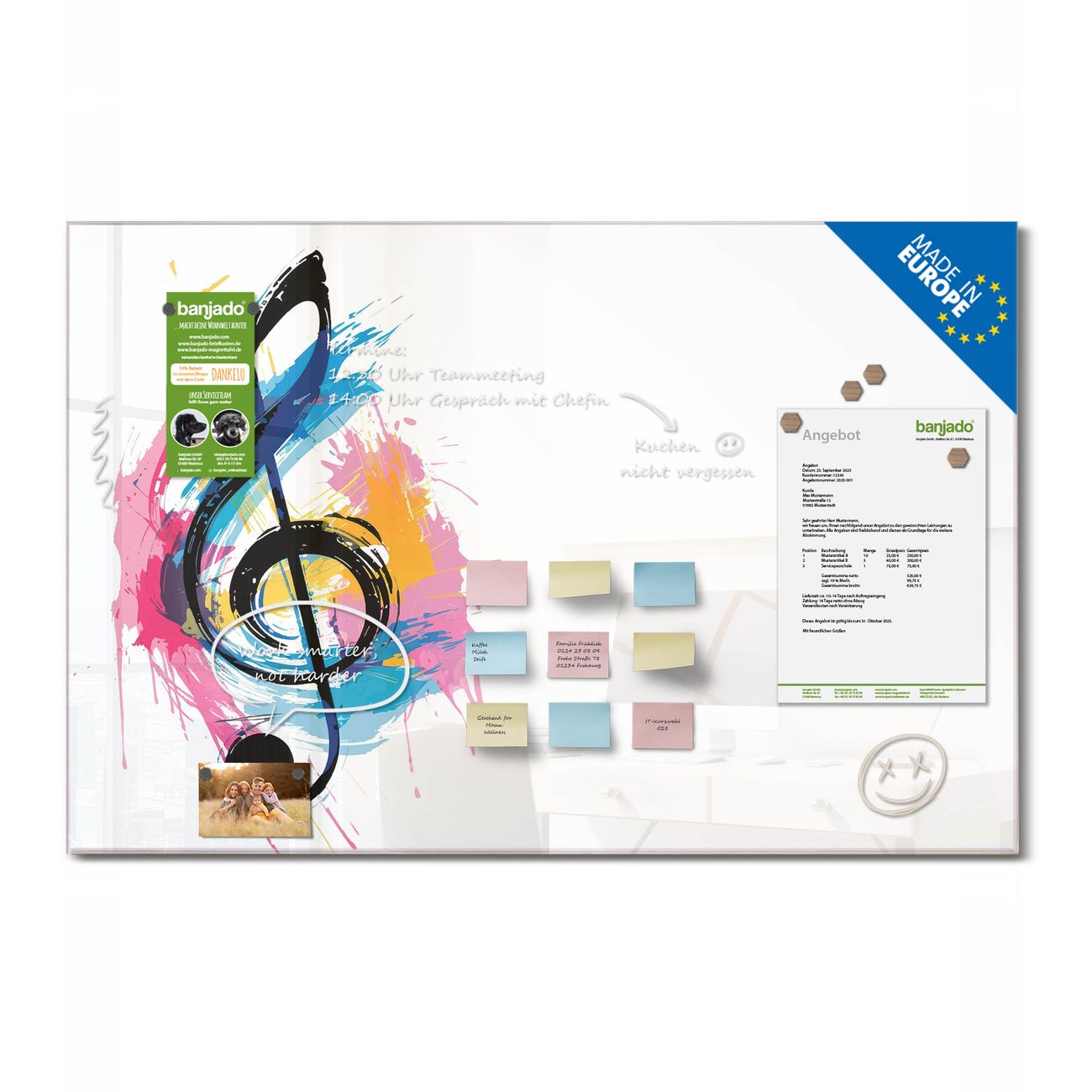Glas Magnettafel im Querformat Motiv Bunte Notenpalette