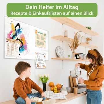 Ein Stück Design, das Ihren Alltag organisiert. Schreiben, heften, inspirieren - alles an einem Ort. Qualität, die man spürt. Montage leicht gemacht. Handwerk mit Herz - veredelt in Sachsen. Einzigartiges Design mit Motiv Motiv Bunte Notenpalette Beschreibbare Glasoberfläche, leicht zu reinigen Starke Magnetkraft durch Stahlrückwand Inklusive 4 Neodym-Magneten Flexible Montageoptionen Handveredelt in Sachsen - Qualität, die bleibt